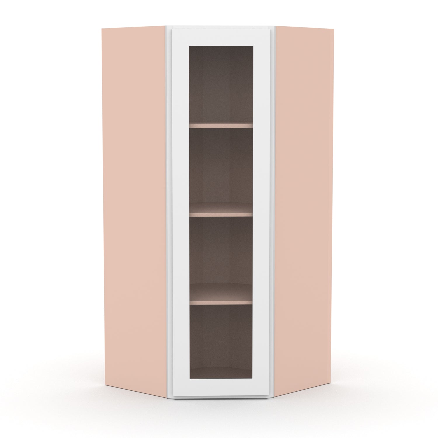 Liberty Shaker White - 27 Inch Diagonal Corner Glass Door Wall Cabinet - 27" Width x 42" Height x 15" Depth