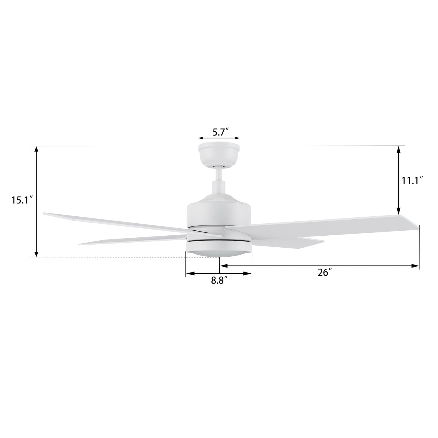 The 52" SANTANA ceiling fan comes with an efficient and quiet motor for large indoor and outdoor living areas that are ideal for this delicate modern masterpiece. The fan has a straightforward design with plywood blades, a 3500K LED light built in, and a sleek finish. The SANTANA ceiling fan control makes it simple to adjust lighting settings and fan speeds.