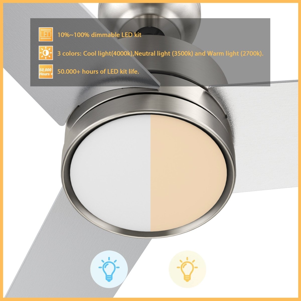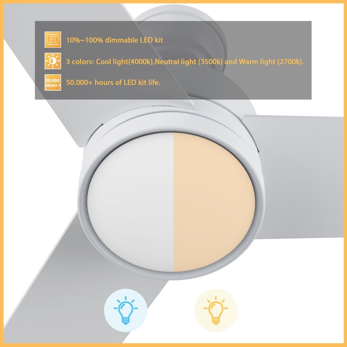 SANTANA 52" Ceiling Fan with wall control and Light Kit Included, Equipped with a Stable and Silent Motor. The SANTANA 52" Ceiling Fan will keep your living space cool, bright, and stylish. This soft modern masterpiece is perfect for large indoor living spaces. The fan boasts a simple design with a beautiful finish, Plywood blades, and an integrated 4000K LED cool light. Additionally, the fan features wall control that allows you to easily set fan speeds and lighting preferences.