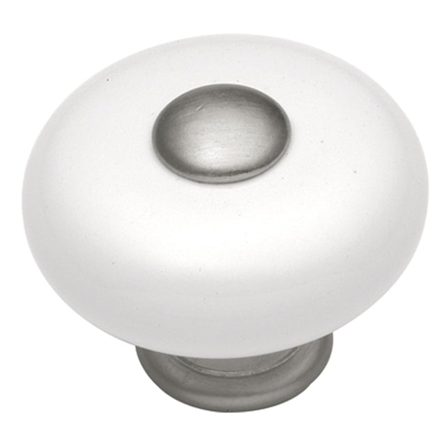 Knob 1-1/4 Inch Diameter - Tranquility Collection - Satin Nickel with White is backordered and will ship as soon as it is back in stock.