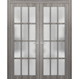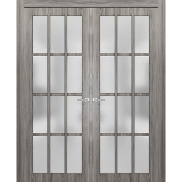 Solid French Double Doors Frosted Glass 12 Lites | Felicia 3312 Ginger Ash Grey | Single Regural Panel Frame Trims | Bathroom Bedroom Sturdy Doors