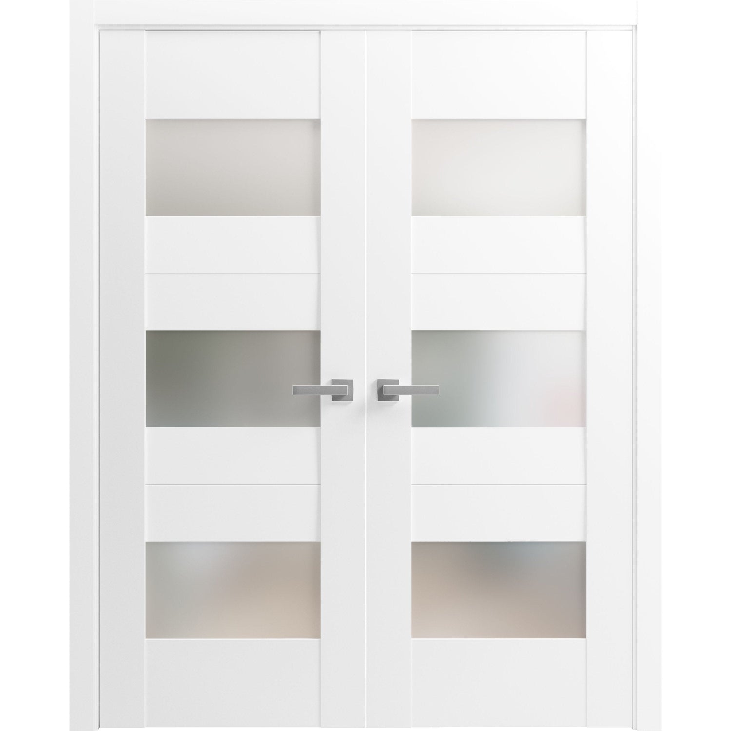 Solid French Double Doors Opaque Glass / Sete 6003 White Silk / Wood Solid Panel Frame / Closet Bedroom Modern Doors - 80 inch / 36 inch is backordered and will ship as soon as it is back in stock.
