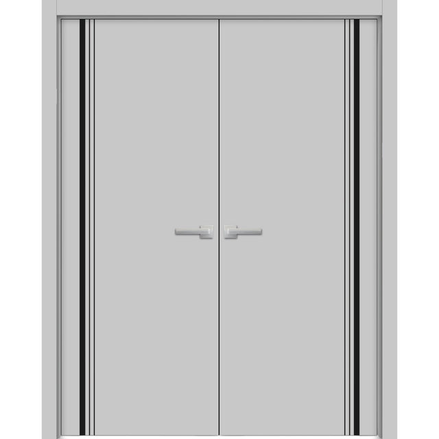 Solid French Double Doors | Planum 0011 Matte Grey | Wood Solid Panel Frame Trims | Closet Bedroom Sturdy Doors - 80 inch / 36 inch is backordered and will ship as soon as it is back in stock.