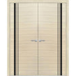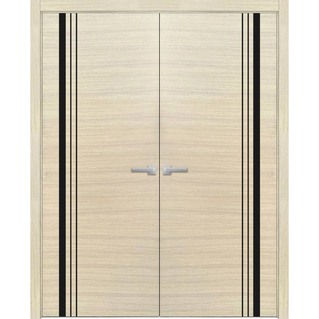 Solid French Double Doors | Planum 0011 Natural Veneer | Wood Solid Panel Frame Trims | Closet Bedroom Sturdy Doors