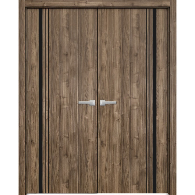 Solid French Double Doors | Planum 0011 Walnut | Wood Solid Panel Frame Trims | Closet Bedroom Sturdy Doors - 80 inch / 36 inch is backordered and will ship as soon as it is back in stock.
