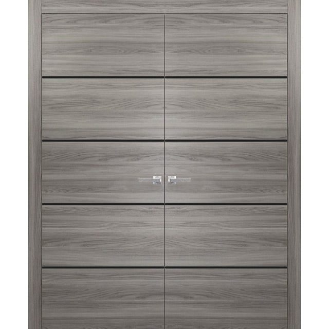Solid French Double Doors | Planum 0015 Ginger Ash | Wood Solid Panel Frame Trims | Closet Bedroom - 80 inch / 36 inch is backordered and will ship as soon as it is back in stock.