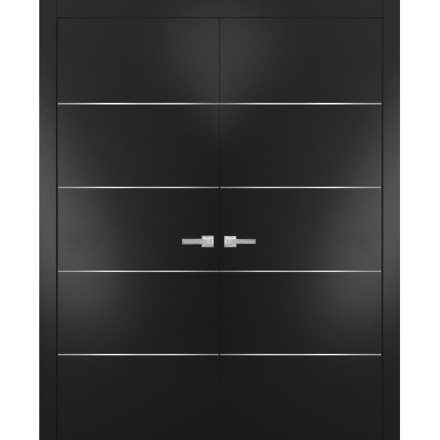 Solid French Double Doors | Planum 0020 Matte Black | Wood Solid Panel Frame Trims | Closet Bedroom Sturdy Doors - 80 inch / 36 inch is backordered and will ship as soon as it is back in stock.