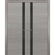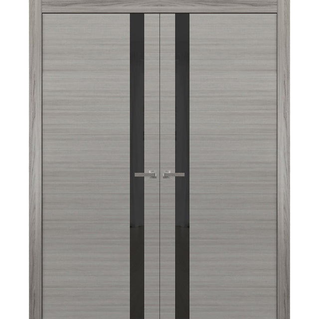 Solid French Double Doors | Planum 0040 Grey Ash with Black Glass | Wood Solid Panel Frame Trims | Closet Bedroom Sturdy Doors - 80 inch / 36 inch is backordered and will ship as soon as it is back in stock.