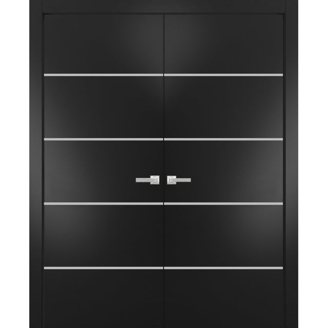 Solid French Double Doors | Planum 0210 Matte Black | Wood Solid Panel Frame Trims | Closet Bedroom - 80 inch / 36 inch is backordered and will ship as soon as it is back in stock.