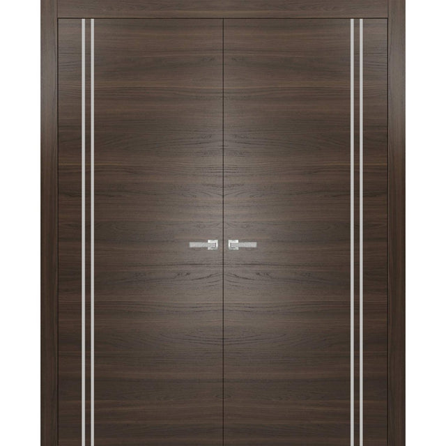 Solid French Double Doors | Planum 0310 Chocolate Ash | Wood Solid Panel Frame Trims | Closet Bedroom - 80 inch / 36 inch is backordered and will ship as soon as it is back in stock.