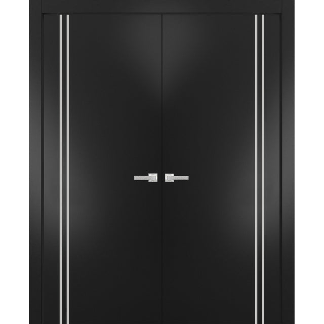 Solid French Double Doors | Planum 0310 Matte Black | Wood Solid Panel Frame Trims | Closet Bedroom - 80 inch / 36 inch is backordered and will ship as soon as it is back in stock.