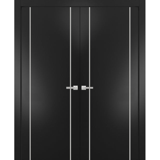 Solid French Double Doors | Planum 0410 Matte Black | Wood Solid Panel Frame Trims | Closet Bedroom - 80 inch / 36 inch is backordered and will ship as soon as it is back in stock.