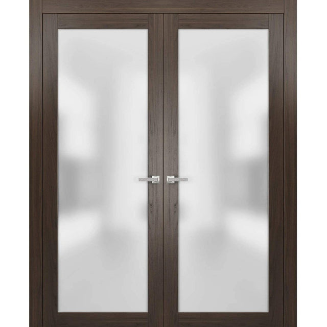 Solid French Double Doors | Planum 2102 Chocolate Ash with Frosted Glass | Wood Solid Panel Frame Trims | Closet Bedroom Sturdy Doors