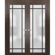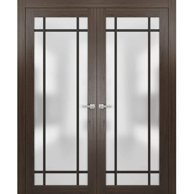 Solid French Double Doors | Planum 2112 Chocolate Ash Frosted Glass | Wood Solid Panel Frame Trims | Closet Bedroom Sturdy Doors