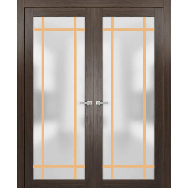 Solid French Double Doors | Planum 2113 Chocolate Ash with Frosted Glass | Wood Solid Panel Frame Trims | Closet Bedroom Sturdy Doors - 80 inch / 36 inch is backordered and will ship as soon as it is back in stock.