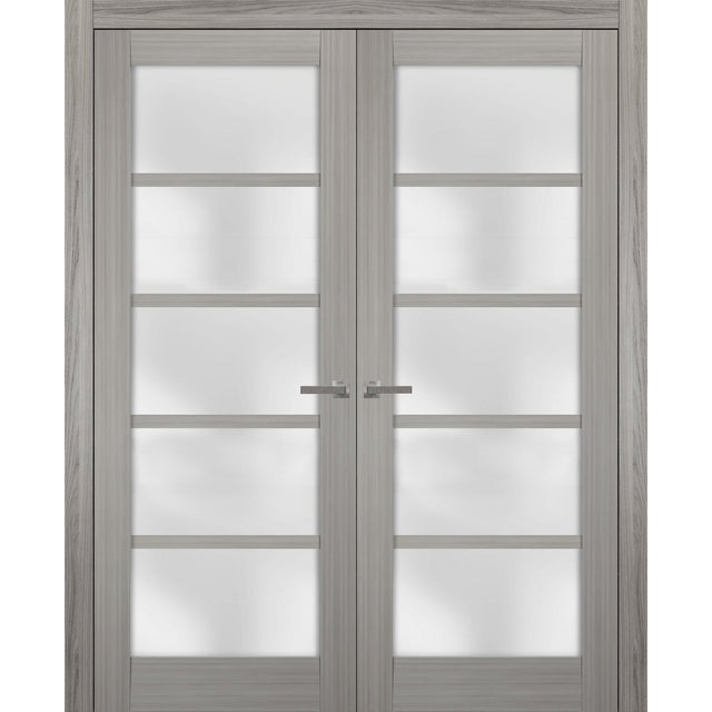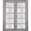 Solid French Double Doors | Quadro 4002 Grey Ash with Frosted Glass | Wood Solid Panel Frame Trims | Closet Bedroom Sturdy Doors