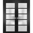 Solid French Double Doors | Quadro 4002 Matte Black with Frosted Glass | Wood Solid Panel Frame Trims | Closet Bedroom Sturdy Doors
