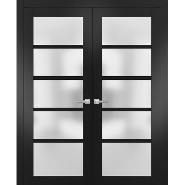 Solid French Double Doors | Quadro 4002 Matte Black with Frosted Glass | Wood Solid Panel Frame Trims | Closet Bedroom Sturdy Doors - 80 inch / 36 inch is backordered and will ship as soon as it is back in stock.