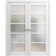 Solid French Double Doors | Quadro 4002 Nordic White with Frosted Glass | Wood Solid Panel Frame Trims | Closet Bedroom Sturdy Doors