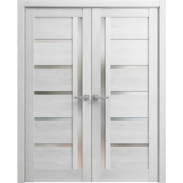 Solid French Double Doors | Quadro 4088 Light Grey Oak with Frosted Glass | Wood Solid Panel Frame Trims | Closet Bedroom Sturdy Doors - 80 inch / 36 inch is backordered and will ship as soon as it is back in stock.
