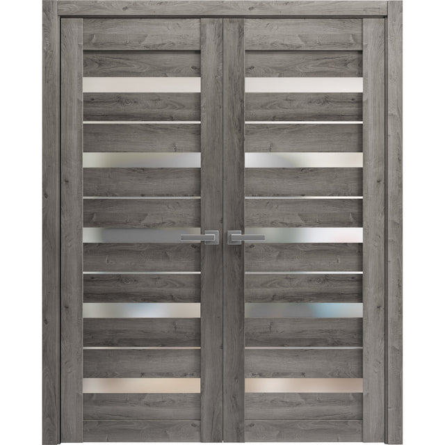 Solid French Double Doors | Quadro 4445 Nebraska Grey with Frosted Glass | Wood Solid Panel Frame Trims | Closet Bedroom Sturdy Doors - 80 inch / 36 inch is backordered and will ship as soon as it is back in stock.