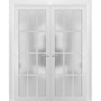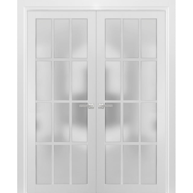 Solid French Double Frosted Glass Doors 12 Lites | Felicia 3312 White Silk | Single Regural Panel Frame Trims | Bathroom Bedroom Sturdy Doors