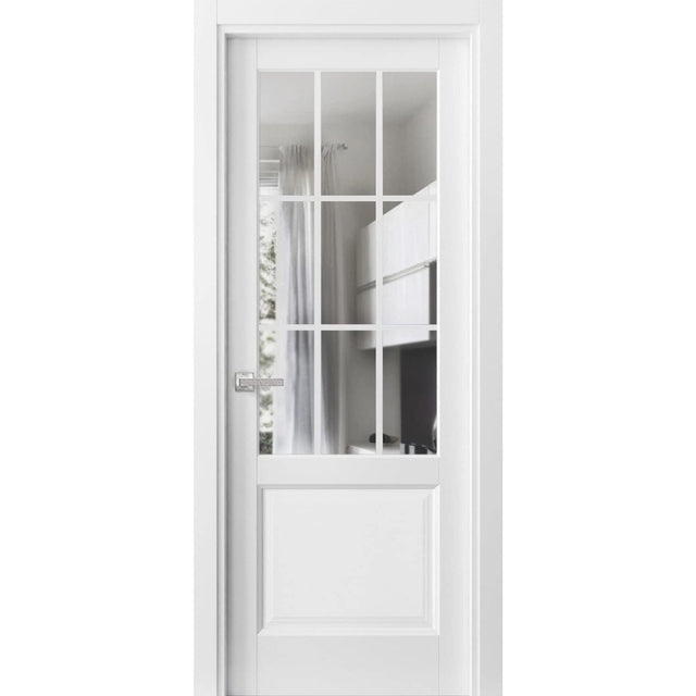 Solid Interior French | Felicia 3599 White Silk with Clear Glass | Single Regular Panel Frame Trims Handle | Bathroom Bedroom Sturdy Doors - 80 Inch / 18 Inch is backordered and will ship as soon as it is back in stock.
