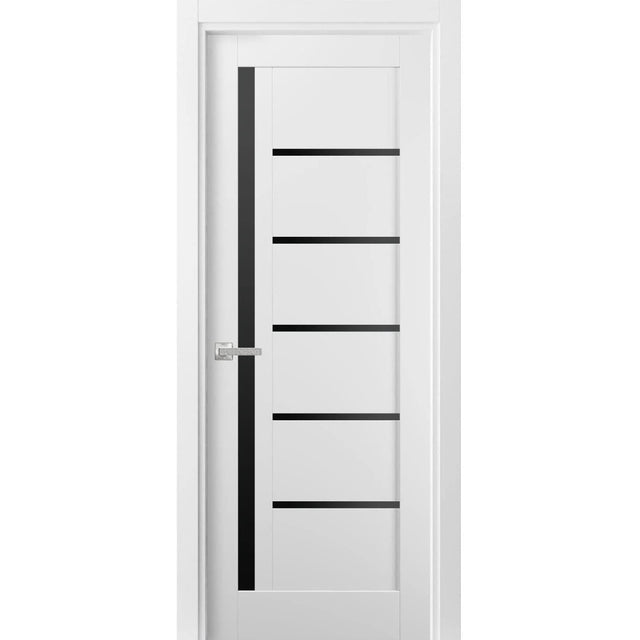 Solid Interior French | Quadro 4588 White Silk with Black Glass | Single Regular Panel Frame Trims Handle | Bathroom Bedroom Sturdy Doors - 80 Inch / 18 Inch is backordered and will ship as soon as it is back in stock.
