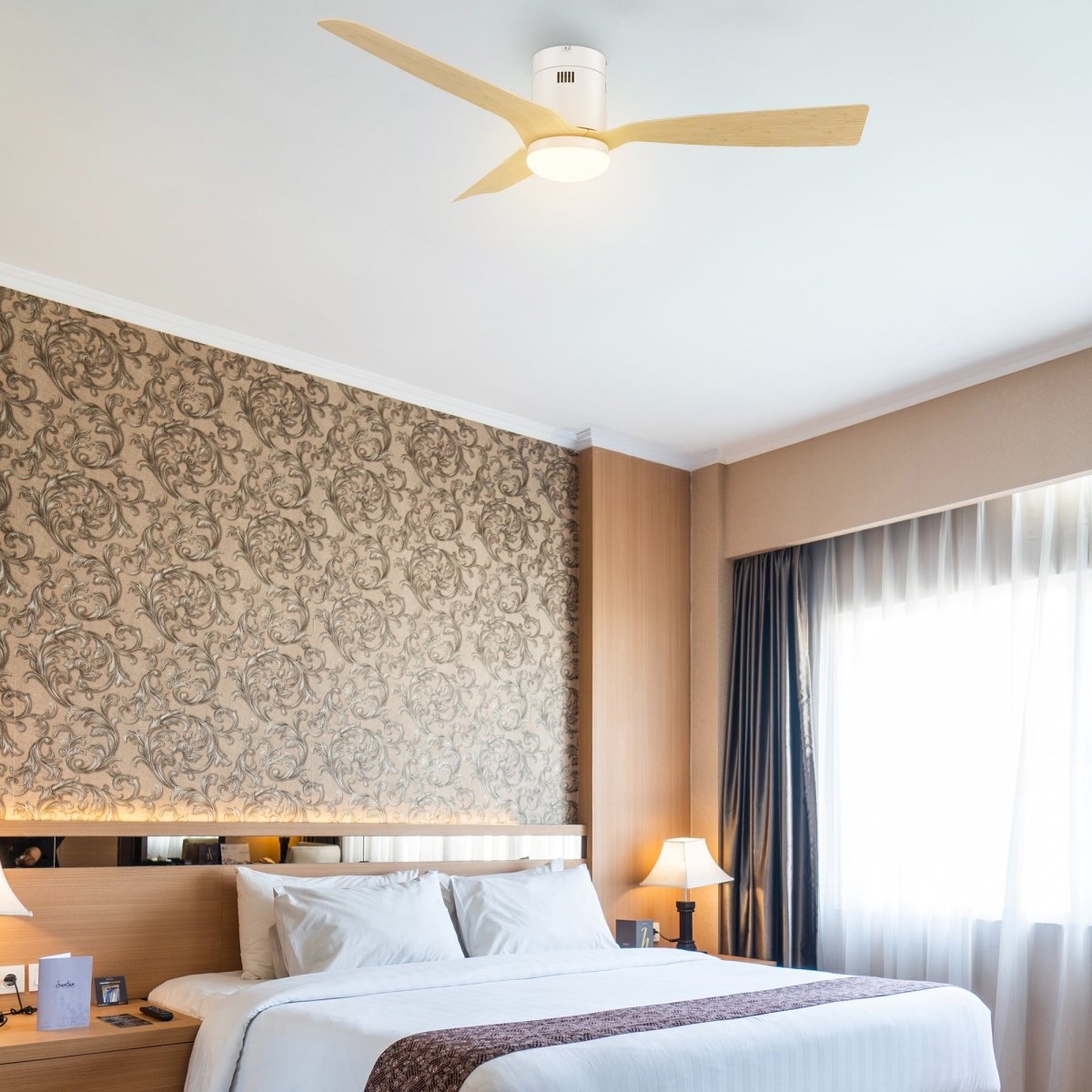 This Spezia 52 inch smart ceiling fan keeps your space cool, bright, and stylish. It is perfect for any indoor and outdoor living spaces. It is one of our low profile, hugger style ceiling fan, ideal for low ceiling rooms. This Wi-Fi smart ceiling fan has clean lines with a fresh white finish and ultra-light and high quality wood finish blades, and has an integrated 4000K LED daylight. The fan features Remote control, Wi-Fi apps, and Voice control technology (compatible with Amazon Alexa and Google Assistant, but not included) to set fan preferences.
