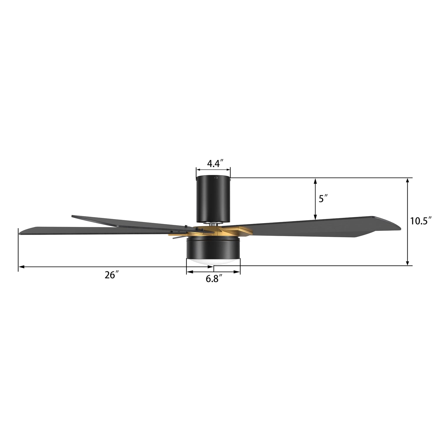 Stockton 52'' smart ceiling fan adds style to your home and optimized energy efficiency. This Wi-Fi enabled smart ceiling fan is designed elegantly with a matte black motor hub, jet black finish fan blades, and gold fan brackets that adds sophistication to any decor. It has an integrated 4000K LED light kit. The fan comes with a hand-held remote control, Wi-Fi Apps, Siri Shortcuts, and Voice control technology (compatible with Amazon Alexa and Google Home Assistant) to set fan preferences.