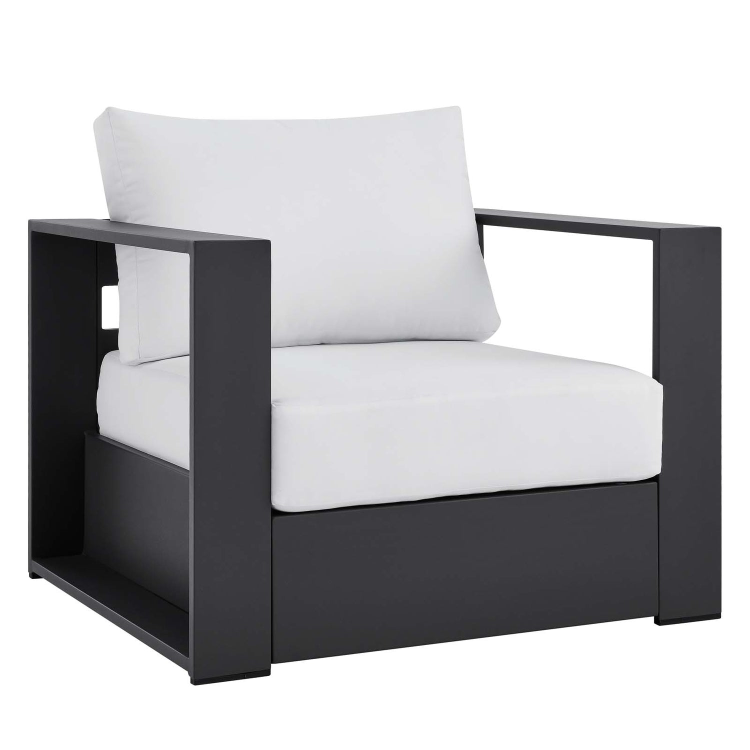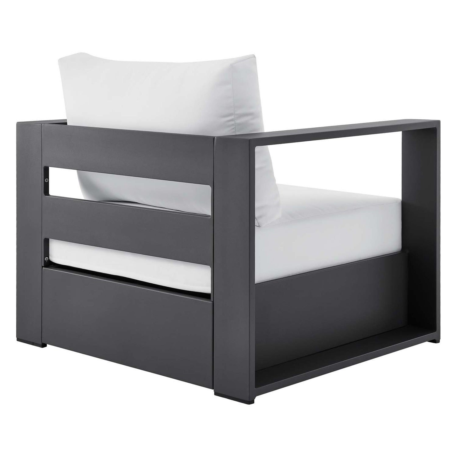 Enliven your alfresco spaces with the Tahoe Aluminum Outdoor Patio Armchair. This modern outdoor patio chair is constructed with well-crafted, durable powder-coated aluminum, dispensing contemporary elegance in your outdoor lounge spaces. With dense foam padding for sustaining comfort before and after a dip, Tahoe is perfect for poolside lounging with a sunproof, water-resistant fabric-covered seat and backrest. The removable, stain-resistant cushions render this outdoor armchair low maintenance and high performing. Tahoe makes an accommodating weatherproof patio chair for al fresco daydreaming. This durable outdoor armchair features non-marking foot glides to protect your deck or patio floor and comes with easy-to-follow assembly instructions. Weight Capacity: 331 lbs.