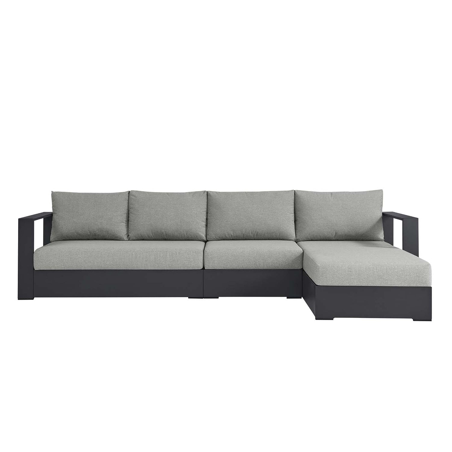 Enliven your alfresco spaces with the Tahoe Aluminum Outdoor Patio 3-Piece Sectional Sofa. This modern sectional sofa is constructed with well-crafted, durable powder-coated aluminum, dispensing contemporary elegance in your outdoor lounge spaces. Its dense foam padding ensures sustained comfort, making it ideal for poolside lounging or as outdoor deck furniture, complete with UV and water-resistant fabric-covered seats and backrests. The cushion covers are removable for easy machine washing. Part of a modular outdoor furniture collection, this 3-Piece sectional sofa offers adaptability and style while entertaining or relaxing. The entire Tahoe aluminum patio furniture set features non-marking foot glides to protect your deck or patio floor and comes with easy-to-follow assembly instructions. Set Includes: 1 Left-Facing Loveseat (Weight Capacity: 661 lbs.), 1 Armless Patio Chair (Weight Capacity: 331 lbs.), 1 Right-Facing Chaise (Weight Capacity: 661 lbs.)