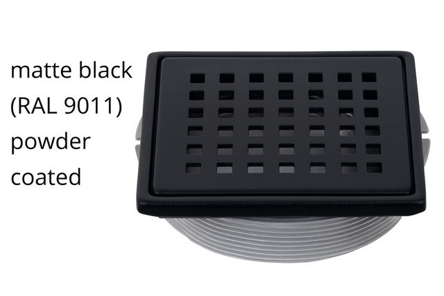 TILUX SQUARE Drain Cover - 4 in - Matte Black - powder coated - Stainless Steel drain cover
