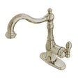 Introducing the Traditional Single-Handle Kitchen Faucet in elegant Brushed Nickel finish. This faucet features a classic design that complements any kitchen decor. The single handle allows easy and precise water temperature and flow control. The faucet is constructed from solid brass, ensuring durability and resistance to corrosion and rust. The brushed nickel finish provides a sleek and stylish look, while the high-arc spout provides ample clearance for washing large pots and pans. This faucet is compatible with standard kitchen sink plumbing and comes with all the necessary hardware for easy installation. Upgrade your kitchen with this traditional and functional single-handle kitchen faucet.