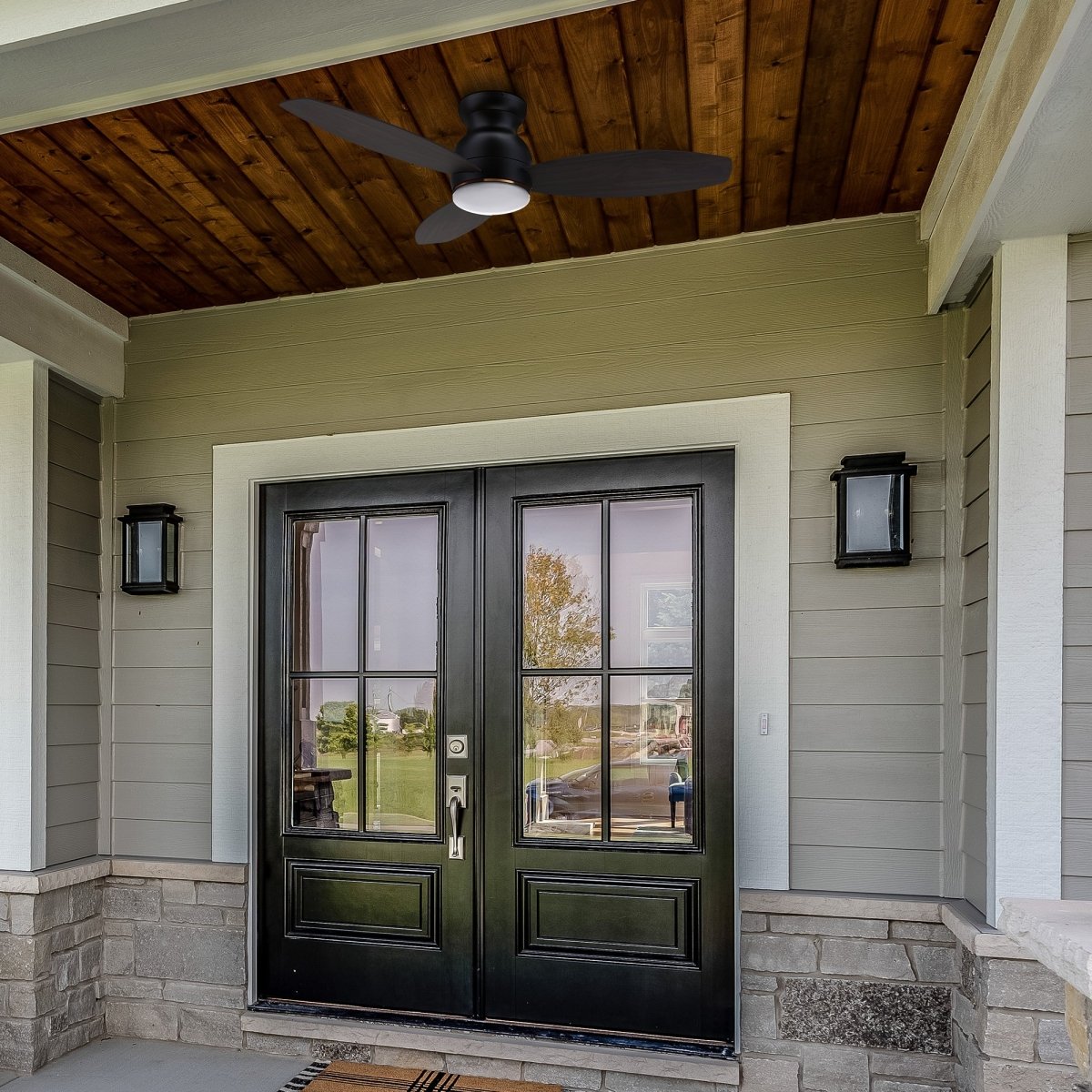 The Trento Smart Ceiling Fan with 3 blades and a 60-inch blade sweep with a flush mounted motor case and tropical inspired blades. The wide paddle shaped fan blades are reversible and two different light wood shades. The motor case is a soft matte black finish and one of our few flush mounted DC motor fans. A dimmable 4000K LED lighting kit that can change between bright white, soft warm light, and a combination of both for a neutral temperature. The frosted glass LED light shade is adorned with gold finish detail that adds a touch of sophistication to the ceiling fan. The fan features Remote control, Wi-Fi apps, Siri Shortcut, and Voice control technology (compatible with Amazon Alexa and Google Home Assistant ) to set fan preferences.
