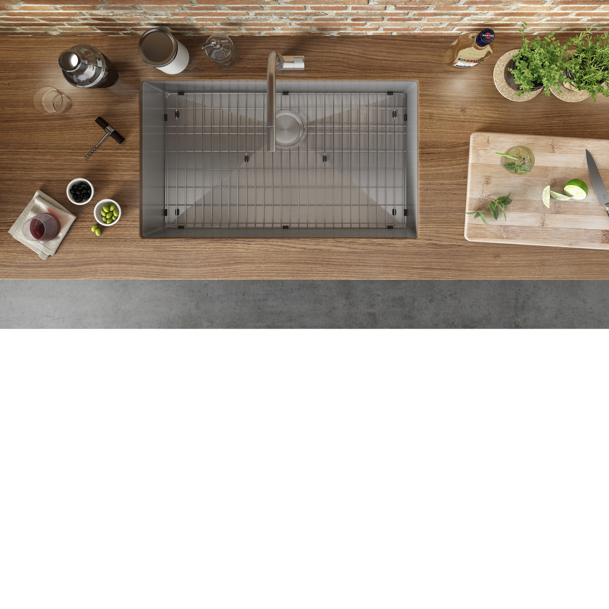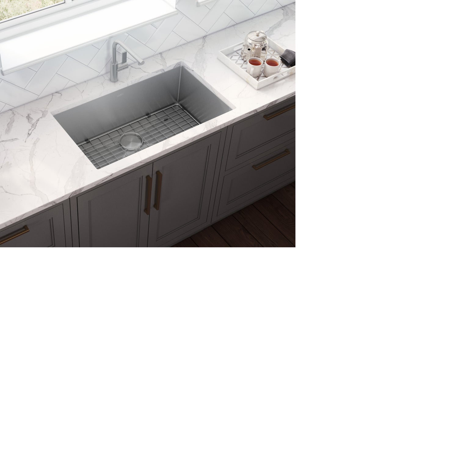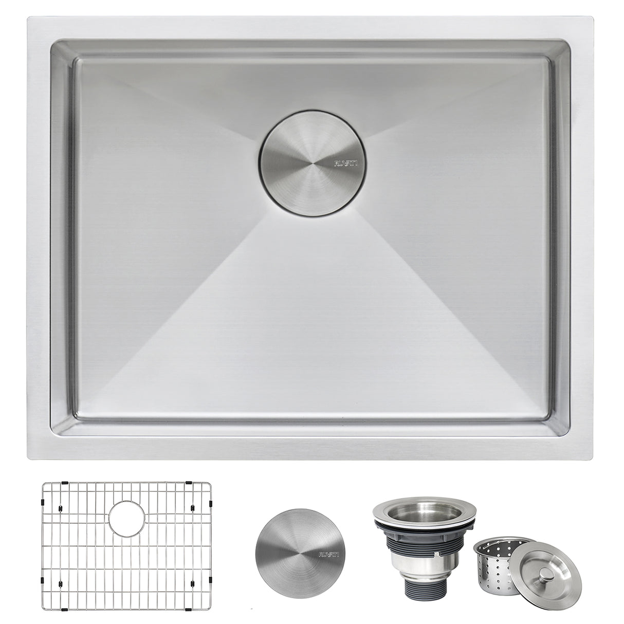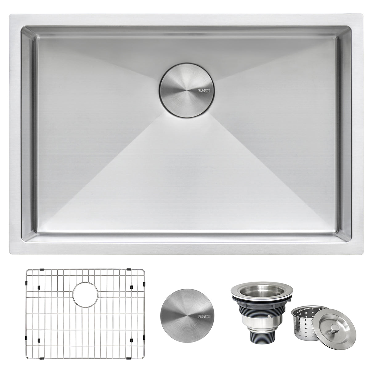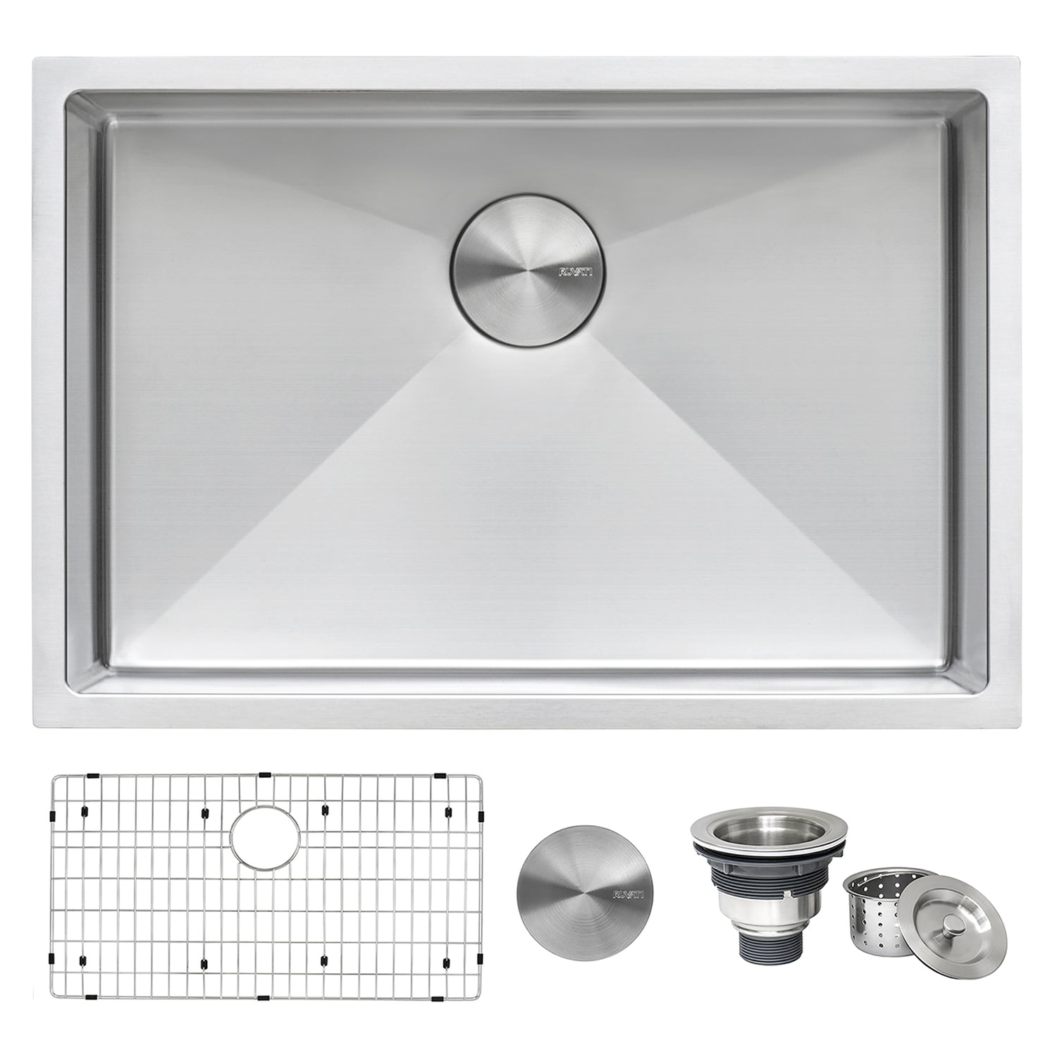 Included in the box: Sink, cut-out template, mounting brackets, rinse grids (set of 2), 2 basket strainers