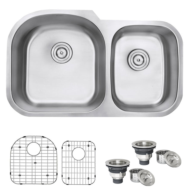Undermount 34-inch Double Bowl 16 Gauge Stainless Steel Kitchen Sink