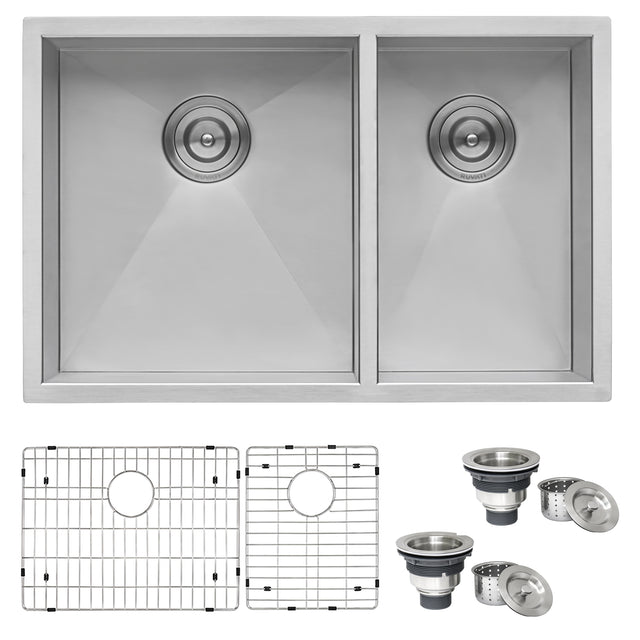 SEproof undercoating minimizes noise and provides superior thermal insulation. A perfect replacement for the traditional sinks, these sinks give an adorable touch to your kitchen. The shave an aesthetic appearance to your kitchen with the latest and modern Undermount 32 in. 70/30 Double Bowl Stainless Steel Kitchen Sink. This sink is very spacious and the double bowl makes it easy to keep more utensils at once. The attractive design of the sink helps to make your kitchen look very welcoming and pleasing. It is made up of 304-stainless steel which ensures that it will remain corrosion-resistant and stainless. The sink can be installed undermount or flush mount as the rim is brushed and finished to match the inside of the sink. This sink is designed in such a way that it matches perfectly with all your kitchen appliances. The exclusive feature of Heavy-duty SoundGUARD padding and NOIrp inside corners with zero radii are the most up-to-date design of the kitchen sink. The brushed stainless finish hides scratches and defects while giving an amazing look to the kitchen. IAPMO has approved this undermount sink to meet UPC and cUPC plumbing standards in the United States and Canada, including ANSI and CSA. You can put your faith in the production process, which will deliver greater results.