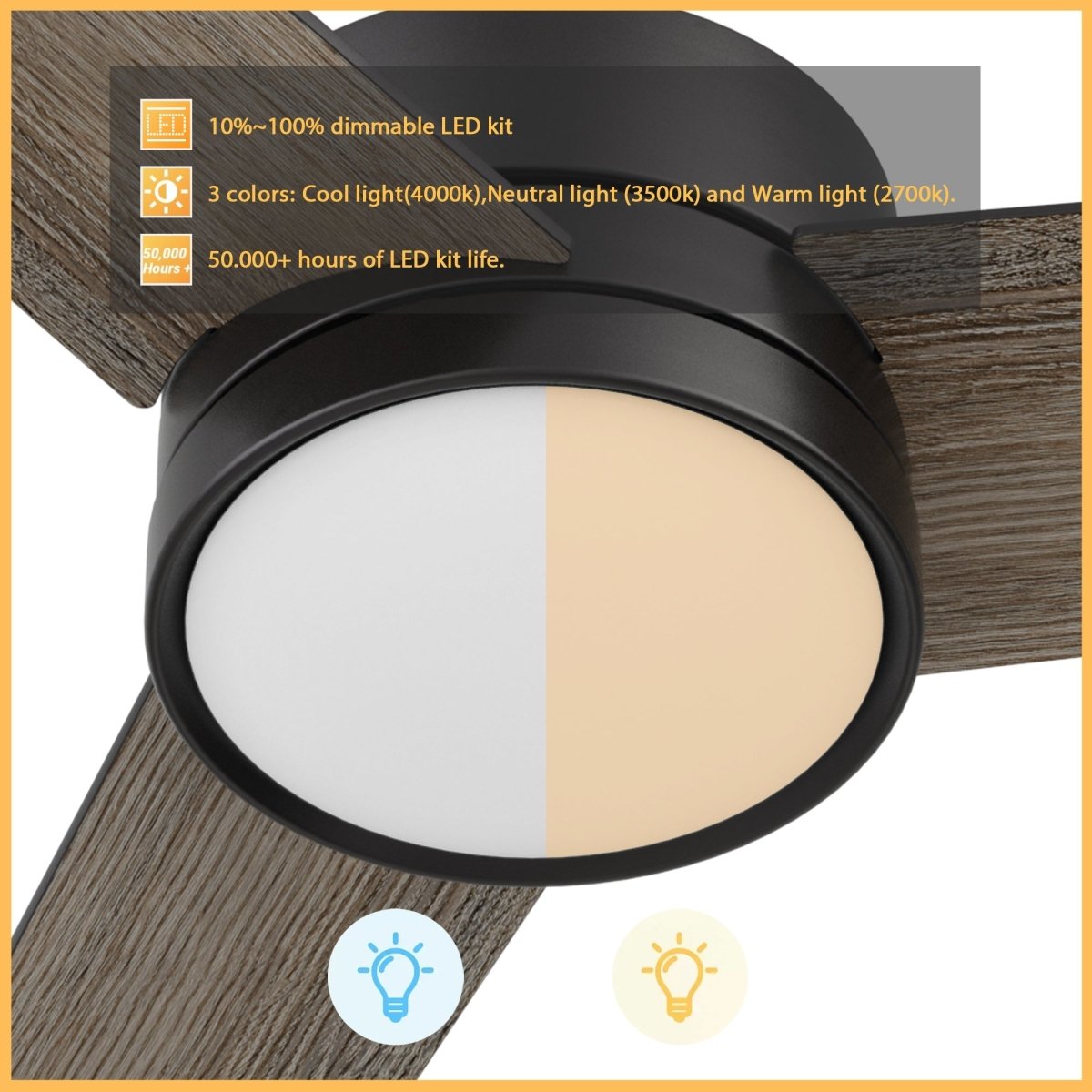 SANTANA 52" Ceiling Fan with equipped with a Stable and Silent Motor. The SANTANA 52" Ceiling Fan will keep your living space cool, bright, and stylish. This soft modern masterpiece is perfect for large indoor living spaces. The fan boasts a simple design, Plywood blades, and an integrated 3500K LED light. Additionally, fan control allows you to easily set fan speeds and lighting preferences.