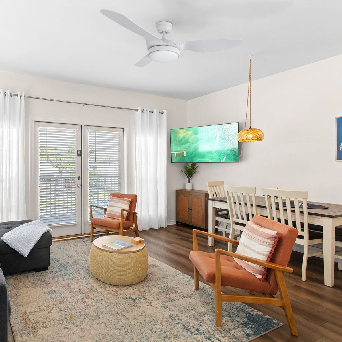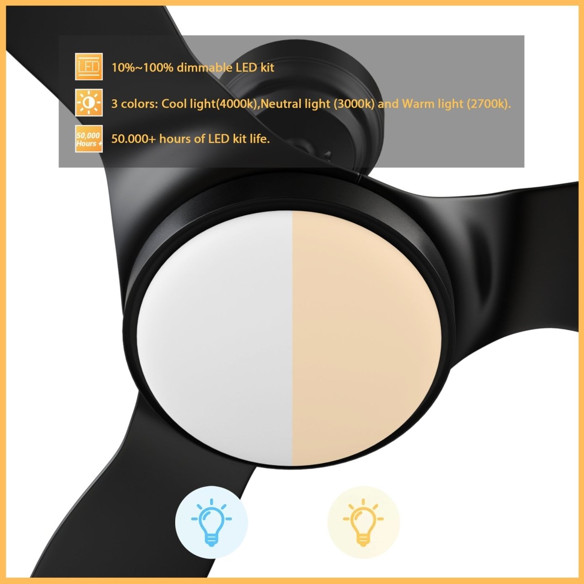 This Vena 52'' smart ceiling fan keeps your space cool, bright, and stylish. Its modern design is perfect for your indoor or outdoor living spaces. This Wi-Fi smart ceiling fan is a simple design with black finish, uses elegant and durable highly-compressed ABS blades, and has an integrated 4000K LED daylight. The fan features Remote control, Wi-Fi apps, Siri Shortcuts, and Voice control technology (compatible with Amazon Alexa and Google Home Assistant) to set fan preferences.