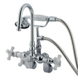 Wall mount clawfoot tub faucets are the perfect fixture to add decorative flair within your bathroom because of their unique architectural elements. With vintage opulence, this will complete your refined bathroom decorum with the help of its premium polished chrome finish and traditionally styled handheld shower. The brass and acrylic construction also makes for a heavy, quality made product.