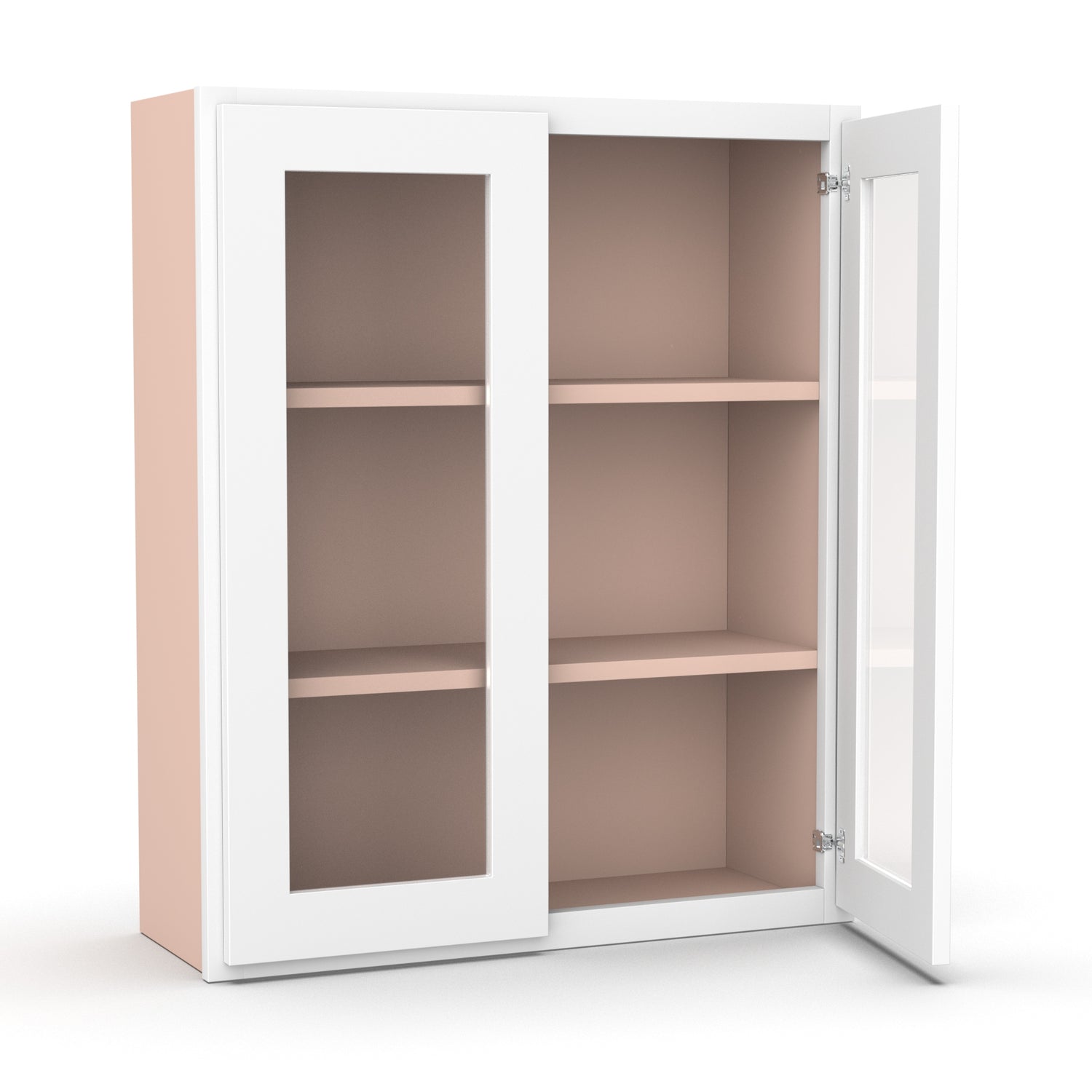 Liberty Shaker White - 30 Inch Double Glass Door Wall Cabinet - 30" Width x 36" Height x 12" Depth