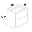 White Frozen Wood Textured - 2 Drawer Bank with Hidden Top Drawer - 34.5 Inch Height x 30 Inch Width x 24 Inch Depth - M04-2DB30-HD