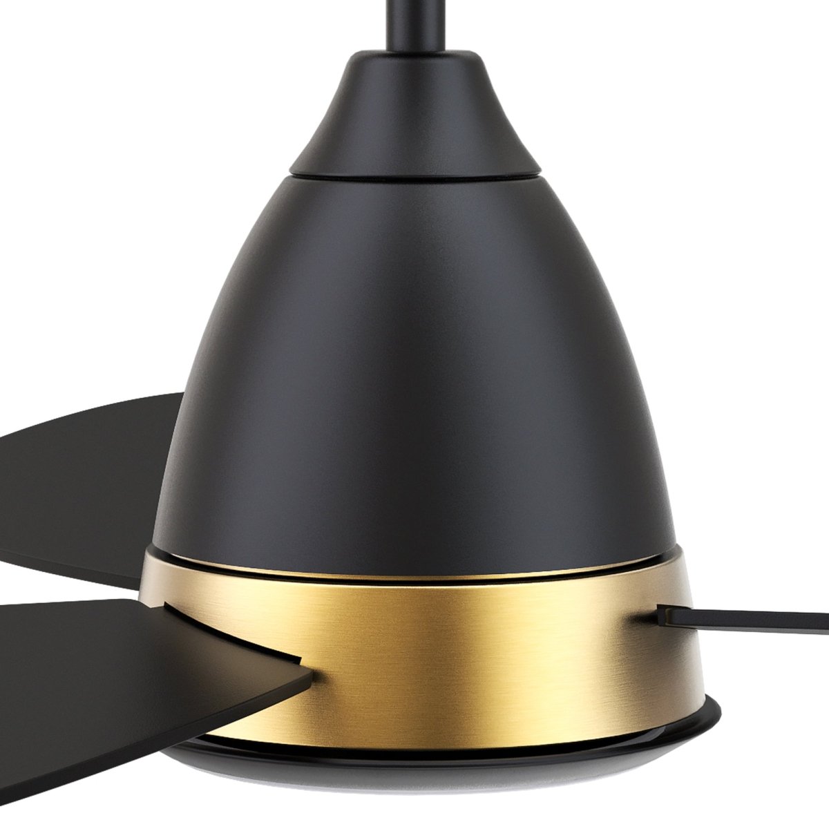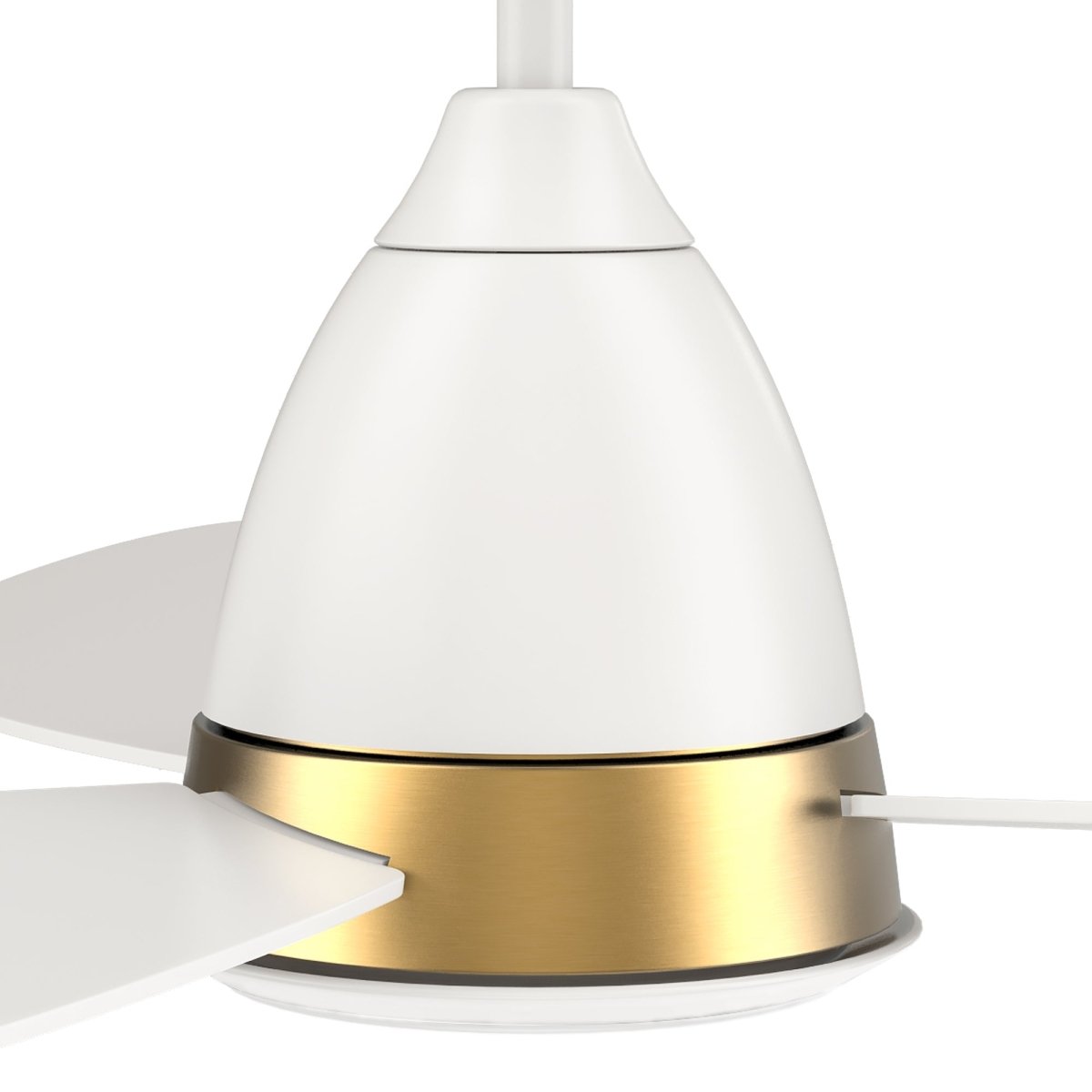 York 52'' smart ceiling fan adds style to your home and optimized energy efficiency. This Wi-Fi enabled smart ceiling fan is designed elegantly with a fresh white motor hub, white finish fan blades, and gold band on the motor hub that adds sophistication to any decor. It has an integrated 4000K LED light kit. The fan comes with a hand-held remote control, Wi-Fi Apps, Siri Shortcuts, and Voice control technology (compatible with Amazon Alexa and Google Home Assistant) to set fan preferences.
