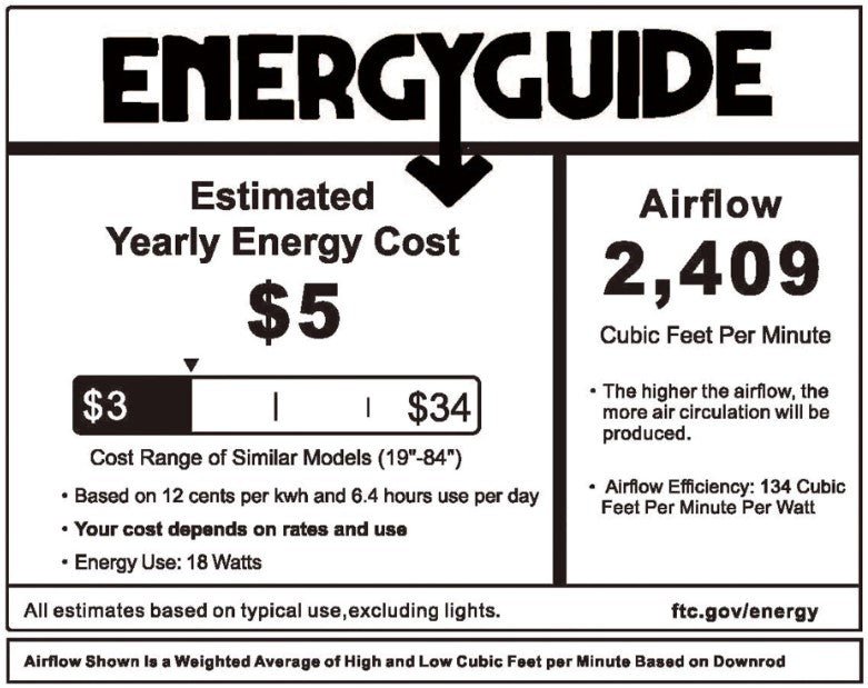 - Estimated Yearly Energy Cost: $5 (Based on 12 cents per kWh and 6.4 hours use per day. Your cost depends on rate and use.)