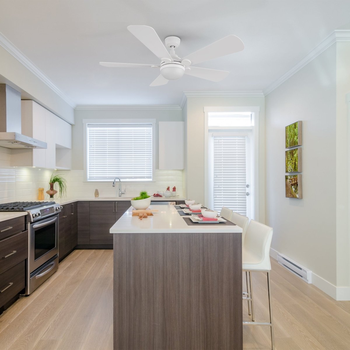 - Reversible motor allows you to change the direction of your fan from downdraft mode during the summer to updraft mode during the winter.