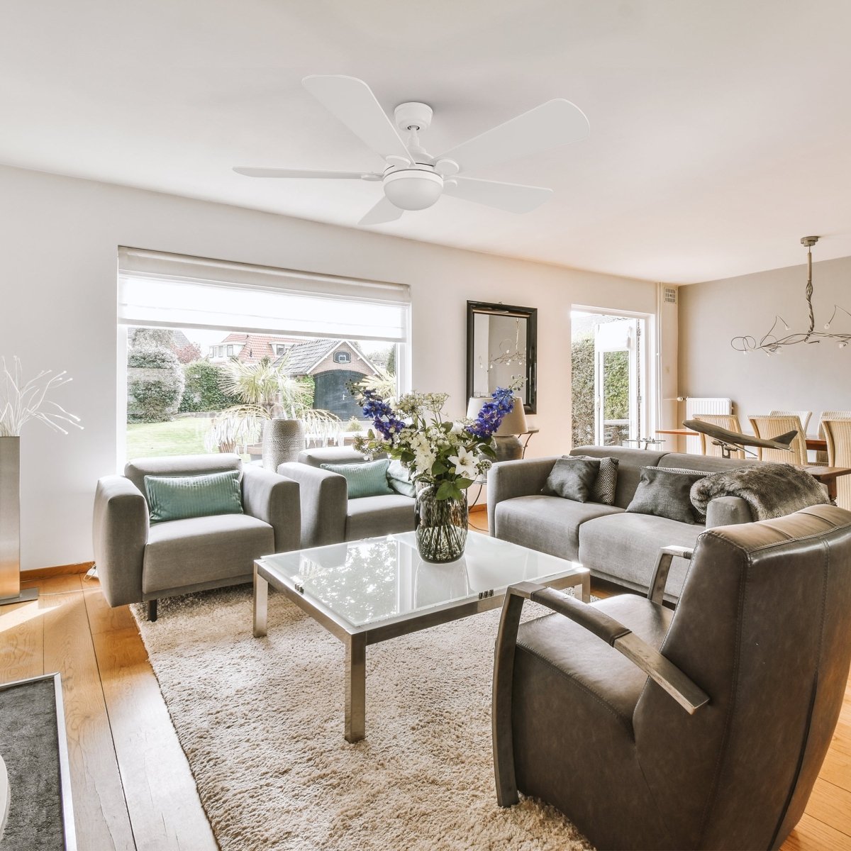 With an efficient and quiet motor, this 52" ceiling fan comes with a remote control and light kit. Your living area will remain cool, bright, and stylish with Zephyr. Large indoor living areas are ideal for this delicate modern masterpiece. The fan has a straightforward design with plywood blades, a 3500K LED light built in, and a sleek finish.