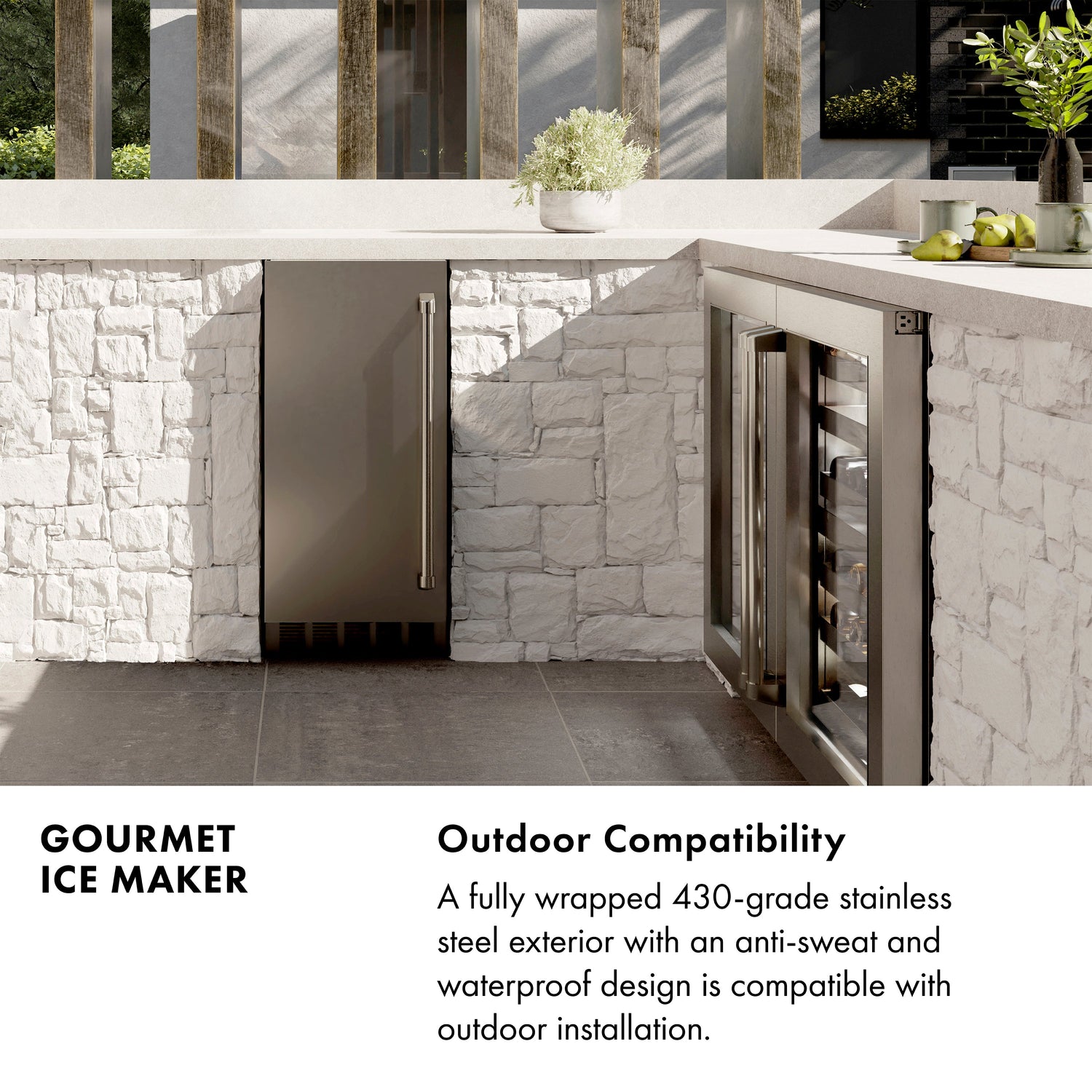 ZLINE 15 in. Touchstone Gourmet Ice Maker with Drain Pump and Solid Stainless Steel Door (IGMD-ST-15)