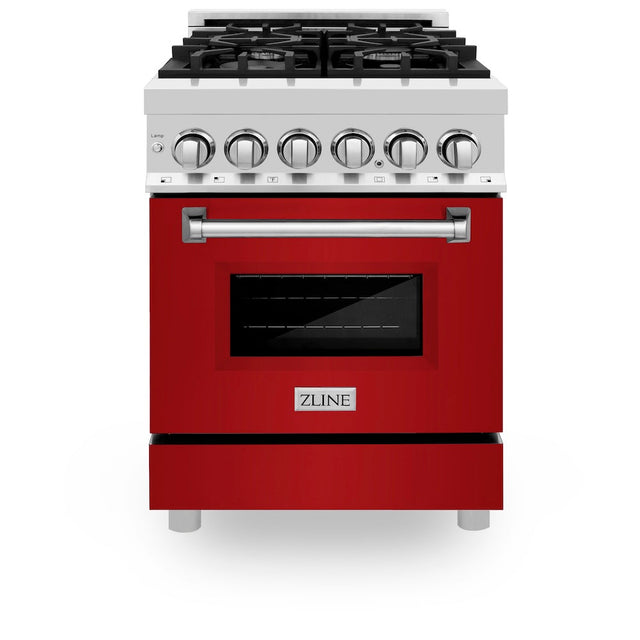 ZLINE 24 in. 2.8 cu. ft. Legacy Dual Fuel Range with 4 Burner Gas Cooktop and Electric Convection Oven in Stainless Steel and Red Gloss Door (RA-RG-24)