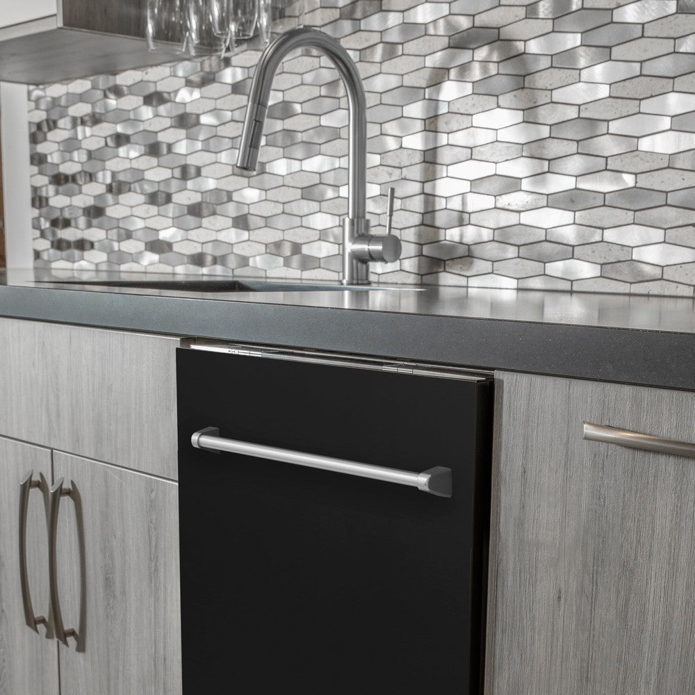 ZLINE 24 in. Top Control Dishwasher with Black Matte Panel and Traditional Style Handle, 52dBa (DW-BLM-24)